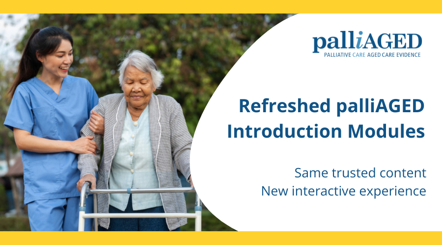 palliAGED will continue to we work with providers, service and the aged care staff who support our community. We are looking to finalise our palliAGED modules and to release a service solution for the Support at Home (End of Life Pathway). We will continue to update our evidence and practice resources and share stories from the sector.